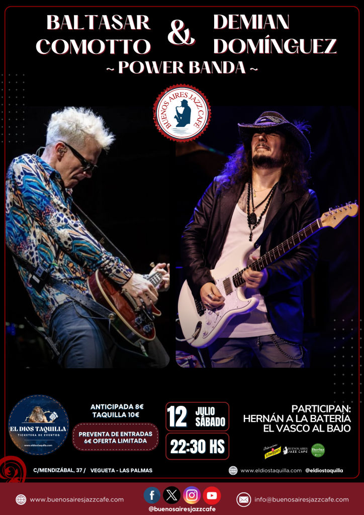 Baltasar Comotto y Demian Domínguez se juntan para un show donde el rock y el blues se cruzan con potencia y personalidad. Acompañados por Hernán en batería y El Vasco en bajo, la banda promete una noche de guitarras afiladas y pura energía en vivo. Un encuentro entre dos músicos con caminos distintos, pero la […]
