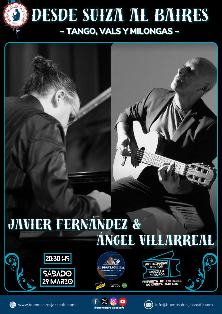 Desde Suiza, actuará en la sala del Buenos Aires Jazz Café el increíble pianista “Javier Fernández”, junto con “Ángel Villarreal”, para traernos con esta dupla, unos de los mejores conciertos de Tango, Vals y Milongas, que hayan pasado por la isla. Para todos aquellos fanáticos de la buena música en vivo, los esperamos en el […]